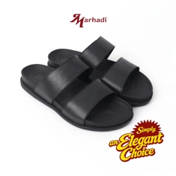 Marhadi Sandal Pria Sendal Kulit Cowok Black Hitam - Qel Double Band